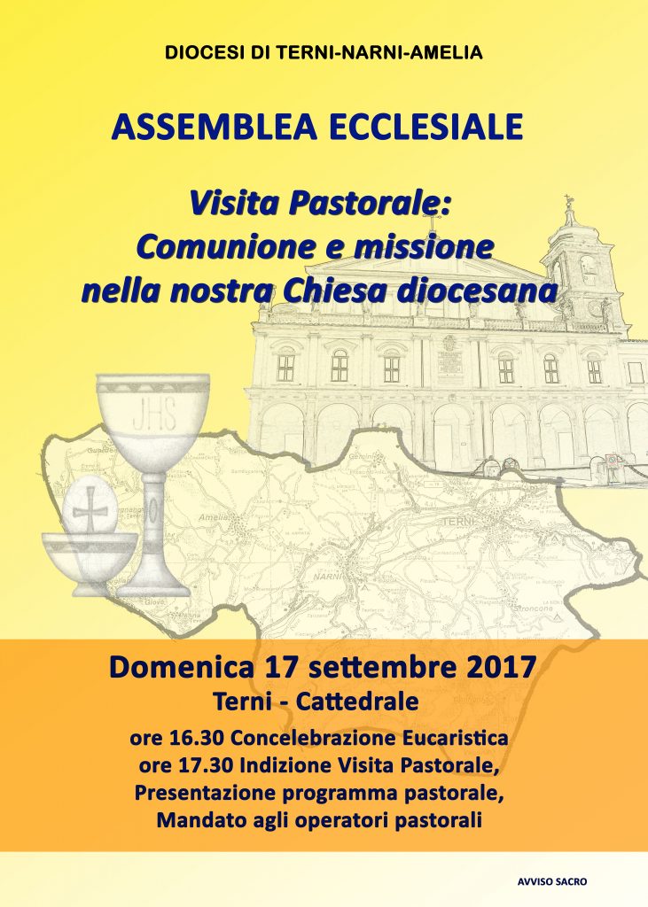 In occasione dell'Assemblea Ecclesiale che si terrà presso la Cattedrale di Terni il 17 Settembre prossimo, il Coro della Diocesi di Terni-Narni-Amelia è stato invitato ad animare i canti durante la Celebrazione Eucaristica che aprirà l'assemblea stessa alle ore 16:30.
